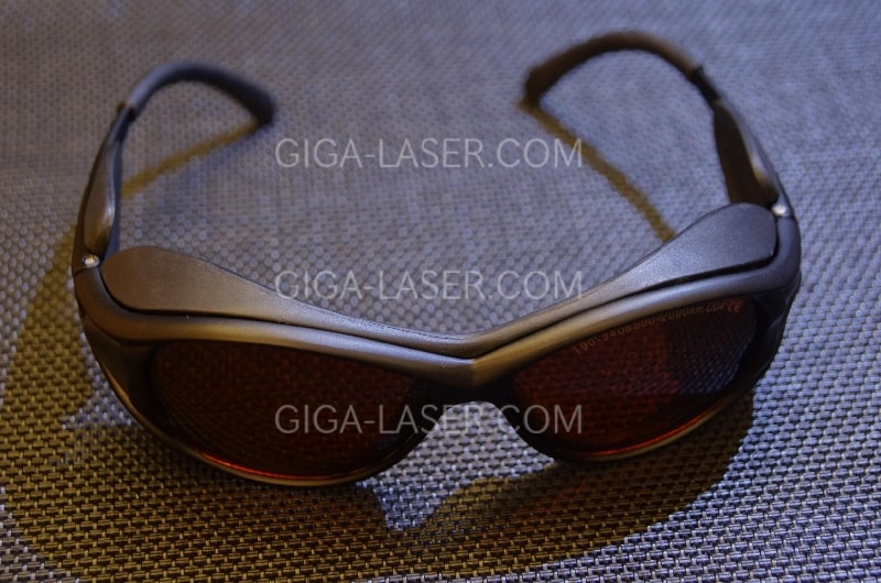 対応レーザーは紫外、紫色、青色、緑色、赤外です。赤色レーザーからは保護できませんが、赤色レーザーを使用しない場合であればこれひとつで事足りるので、レーザー波長に合わせてゴーグルをかけかえる煩わしさから解放されます。