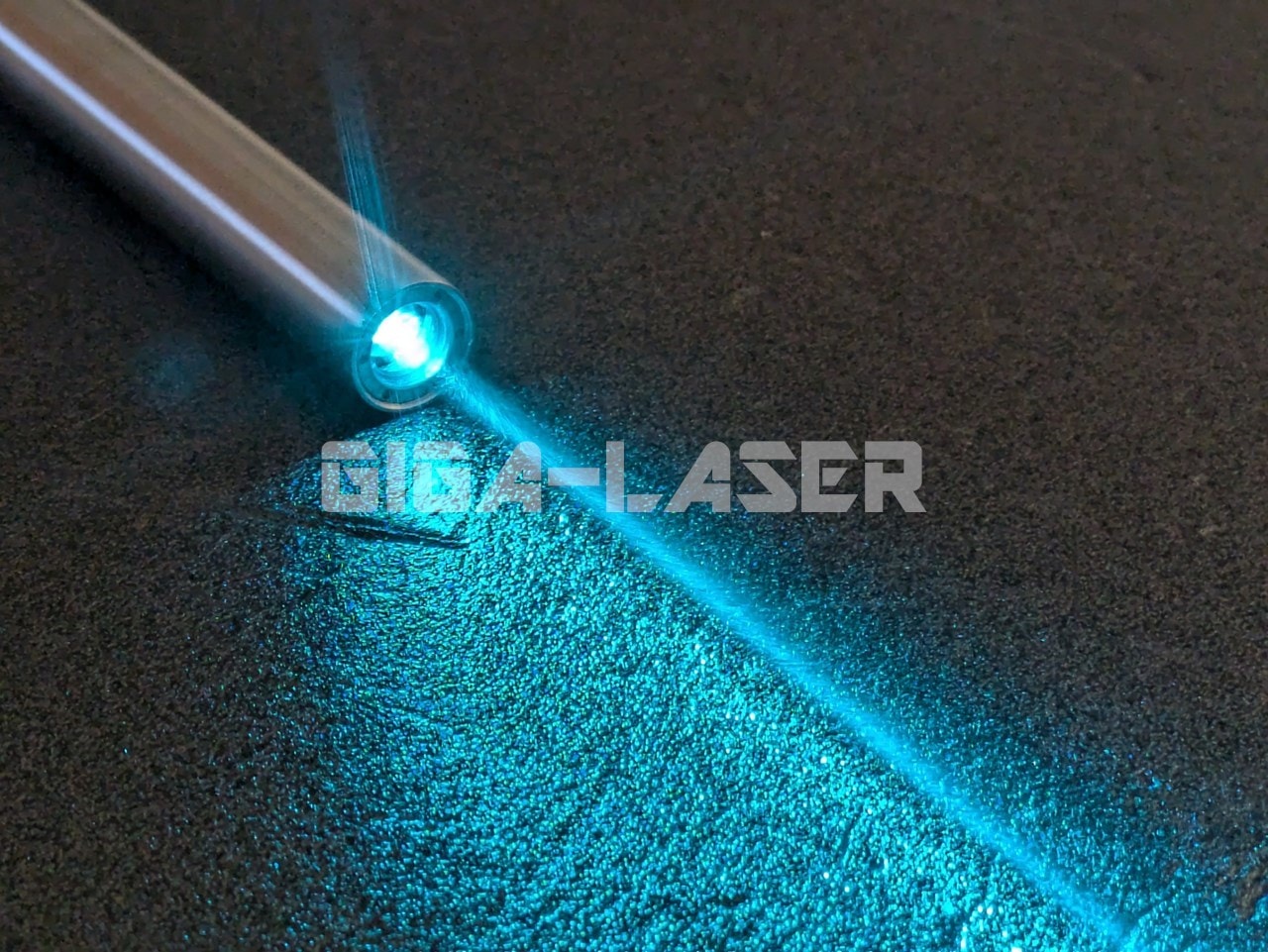 夜間であれば屋外でもシアンレーザー光のビームは目視できます。ただ、グリーンレーザーに比べるとやはり色としての視認性が少し及ばずといったところであり、ビームの視認性を求めるといった観点からは、星空観望などのさいにはグリーンレーザーがもっともおすすですが、シアンレーザーもなかなか視認性がよいことから、グリーンレーザーより少し目立たないように使いたいといった場合にはとても合っています。
