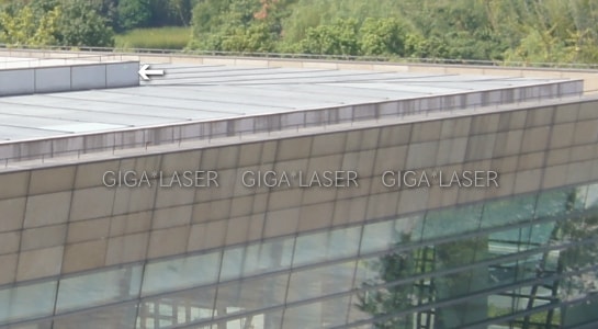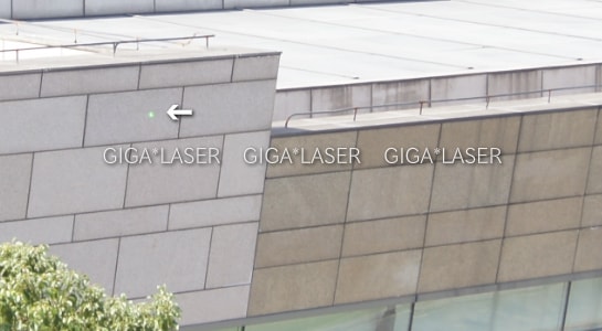 対象の色が白に近いので、レーザーがより目視しやすくなっている。対象が白だとレーザーの反射が強くなるので、昼間でも対象の色により照射点の視認性が変わる。
