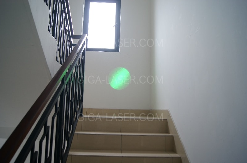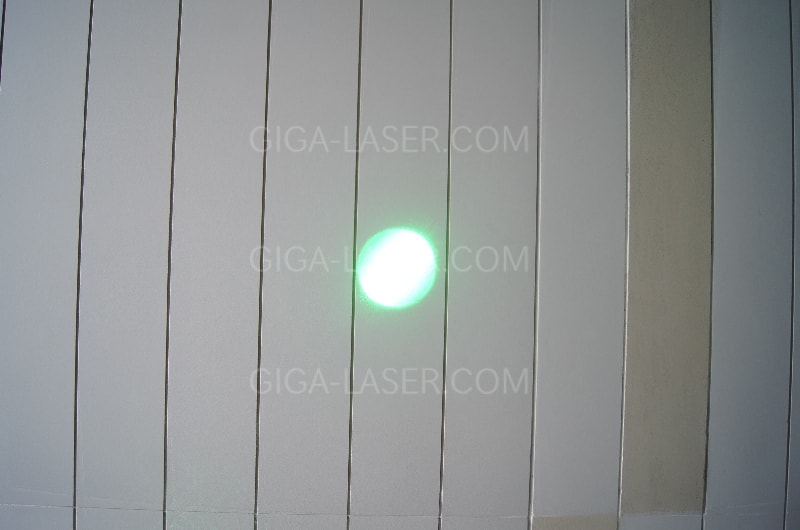 緑色ダイオードレーザーポインター スポット照射焦点を大きめに開放するとこれくらいに。距離により大きくなります。